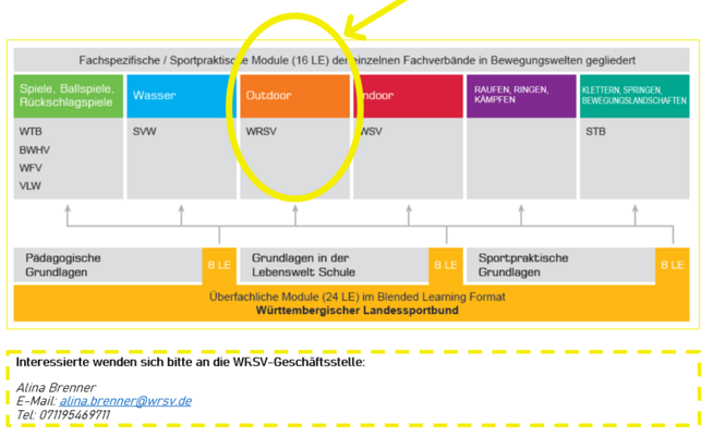 Aufbauend auf erste pädagogische und sportmotorische Grundlagenmodule werden auch sportartspezifische Inhalte in den verschiedenen Bewegungswelten vermittelt. Darüber hinaus erhalten die Teilnehmenden hilfreiche Informationen zur Lebenswelt Schule und zum praktischen Einsatz im Ganztag.